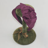 This style is made of faille fabric with an elegant rose at the side. The flower is modeled with such expertise it appears as if it naturally bloomed. It is place on a tapered headband that is comfortable and easy to wear from day until night. Create the occasion and wear this lady like style to enchant your admirers.