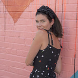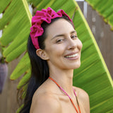 This style is inspired by the botanical headbands worn by artist Frida Kahlo. Our interpretation is a headband with a fabric ruffle flower. You can style the ruffle a bit on the wild side or flatter depending upon your mood. Saunter into any occasion with your Mestiza headband and light up the party. This alluring style made of our grosgrain fabric is an excellent choice to top off your #ootd outfit of the day any day of the year. By wearing this design, you are communicating your love and dedication to couture fashion just as we are!