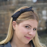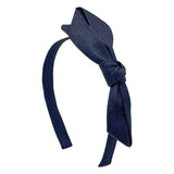 Denim just got even better! This is our super cute Denim Headband with Side Bow, a fusion of casual denim and couture craftsmanship. Each headband is delicately crafted using couture sewing techniques, resulting in a piece that exudes elegance and style.