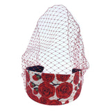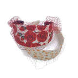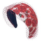 Special Edition Route 66 Floral Voilette Headband. The base is a wide floral headband trimmed with versatile veiling trim. The veiling width can be adjusted to your preference. Create your own look with this style by wearing the veiling open over the face or folded on top of the headband. Jennifer loves to create styles that allow the wearer to express themselves and this style is an exceptional example of that. Create some mystery by wearing the veil over your eyes and face. Or go classic vintage glam and wear the veiling across the top of the headband.