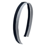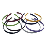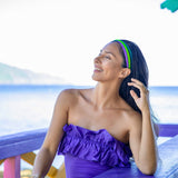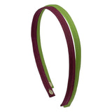 Our classic grosgrain skinny headband is as functional as it is fashionable. Use it to keep your hair out of your eyes and frame your face in a band of simple color. Double up on our bands in the same color or multi colors to create your own style. Our model has created a triple color headband in Lime, Teal, and Purple. This simple trio creates an automatic 60s look.