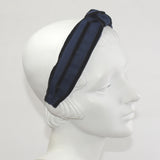 Tilda is made turban made of grosgrain and velvet ribbon tied in center knot. This turban is made with Jennifer's favorite fabrication, hand crafted by her team of ethically sourced ribbons. The center knot serves as a chic focal point, adding a touch of sophistication and flair to the turban. This stylish detail makes it an ideal accessory for a wide range of occasions, from casual outings to special events, where you want to make a statement with your headwear. Designed for both comfort and style, the Grosgrain and Velvet Center Knot Turban adjustable feature, ensuring a secure fit for various head sizes. The combination of grosgrain and velvet creates a harmonious blend of classic and contemporary aesthetics.