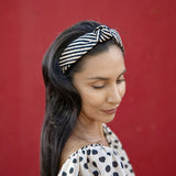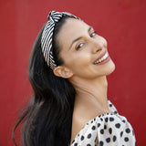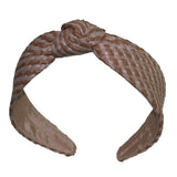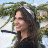 Our Raffia Harlow - is a center knot turban headband. It is an essential for adding a bit of class and whimsy to your style this summer. The Harlow silhouette exudes vintage glamour. This style is coveted turban design that is made with couture sewing techniques unique to the artisans of Jennifer Ouellette. A style like no other turban, this high end hair accessory offers the magic appeal of romantic eras.
