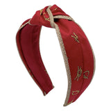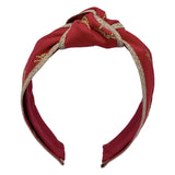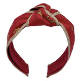 This summer turban headband called Chloe, is crafted from cotton print featuring a western-style fabric with a charming rope knot motif on a vibrant red base. The straw-trimmed edges add a touch of rustic elegance, enhancing its unique design. Perfect for adding a bold statement to your summer outfits, this headband combines playful style with a comfortable fit, making it a must-have accessory for warm weather.