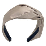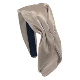 The Sweetheart headband, inspired by '40s style fashion, features a gathered side detail crafted from a mix of satin and grosgrain. The satin offers a luxurious sheen, while the grosgrain adds a classic texture. This blend creates a vintage-inspired accessory with a touch of elegant sophistication and nostalgic charm.