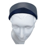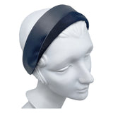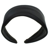 This satin charmeuse wide headband features a black Bengaline accent with a pointed center shape. It offers versatile styling options, allowing you to wear it folded for a two-tone look or pointed for a solid, striking appearance. The luxurious satin charmeuse provides a smooth, elegant finish, making it a chic accessory for any occasion.