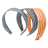 The classic stripe medium-width headband features a timeless silhouette, approximately 1 1/2" wide. Crafted from long-lasting ribbon with couture-quality construction, it adds a touch of elegance to any look. Choose from our vibrant color options to beautifully highlight your eye color and elevate your style.