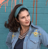 We love this simple silhouette created in luxurious suede, we call her Penny. It is a center divot turban, with a wrapped suede piece to emphasis the middle of the shape. This retro silhouette is one of our bestsellers designs. Available in many beautiful colors to a colorful vintage accent to your Fall fashion. Experience the difference of our headwear! You’ll fall in love with our style and quality. Nothing can compare.