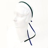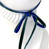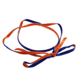 Create your own look with the long ribbons of this skinny velvet band. Wear it tied behind the neck or wrap it around your head and tie it in the front. Choose the colors of your favorite team like the NY Met's orange and royal. It's also a gorgeous style headband with 2 neutral colors. Create your one of kind color way for this hairband and braid it into your hair. Frida would! This is a versatile and luxurious accessory that offers the best of both worlds with its sumptuous velvet texture and the flexibility of two distinct colors, providing endless styling options for your every look.