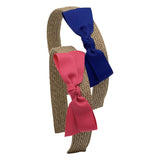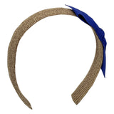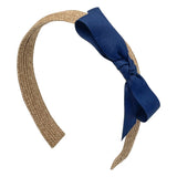 This wheat straw headband is elegantly trimmed with a colorful large grosgrain couture bow positioned at the side. The natural straw offers a light, earthy feel, while the oversized grosgrain bow adds a touch of luxury and sophistication. This headband blends timeless charm with modern elegance, making it a perfect statement piece for any refined ensemble.