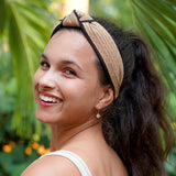 Make a couture fashion statement with our Straw and Grosgrain Center Knot Turban and elevate your look with its unique blend of natural beauty and refined elegance. Express your love for couture fashion by wearing this style!