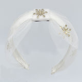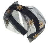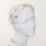Our Ethereal World Turban is extra wide with a center divot, created from ballerina tulle and trimmed with scattered vintage gold stars. Experience this dreamy beauty made exclusively by Jennifer Ouellette.