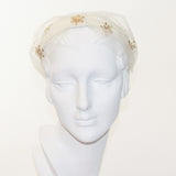 Step into a world of ethereal beauty with our Tulle Turban with Gold Stars, a stunning headpiece crafted with couture techniques to captivate and enchant. Handmade from delicate tulle fabric, this turban exudes an otherworldly elegance that is both timeless and captivating.