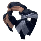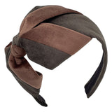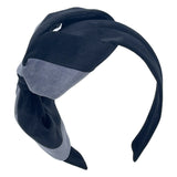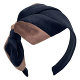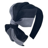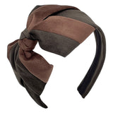 Our Two Tone Carolina Bow Headband is made of contrasting colors of ultra suede (faux suede). This feminine style is a signature of Jennifer Ouellette. Carolina is our best selling bow headband! Our bow styles are couture quality, delicately create by hand by her millinery artisans. Add this touch of modern vintage inspired glamour to your dressy or casual looks.