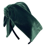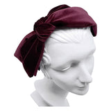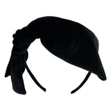 This dramatic headpiece features a draped, long velvet bow that adds a touch of luxury to any look. A wide velvet trim is elegantly tied at the side, with the looped portion covering a broad area of the head. The hanging ties beneath the knot flow gracefully like tassels. Available in a range of sumptuous velvet colors, this headpiece allows you to choose the perfect shade to enhance your style.