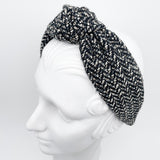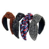 Our classic center turban silhouette - Blair -crafted from 100% wool tweed. Designed by Jennifer Ouellette in NYC. This couture headband adds glamorous touch to all your Fall and Winter looks. You will fall in love with our tweed fabrics made of the most interesting color schemes, hand selected by Jennifer. This is our best selling Blair turban, named after Blair Waldorf, which is absolutely stunning in our select wool tweeds. Hands down the best tweedy turban for the cold months that is also comfortable and adjustable.