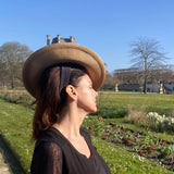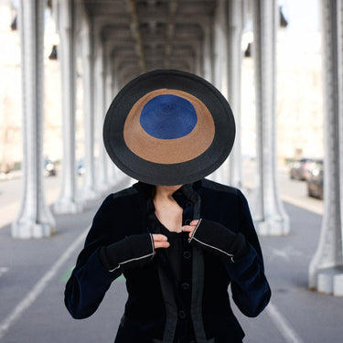 Our Tri-Colored IFO (Identified Fashion Object) Travel Hat, the perfect blend of style, functionality, and portability, designed to accompany you on all your adventures, near and far. Crafted from lightweight and durable materials, this hat is engineered to withstand the rigors of travel while maintaining its shape and chic aesthetic. The three dark colors add a playful touch, making it a standout accessory for any outfit from spring to early fall.