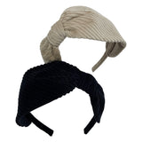 Top off your Fall style with our Corduroy Audrey. This style is inspired by 1950s film star, Audrey Hepburn. It has a wide bias cut headband with side divot that creates a look of a large bow. Audrey is the perfect hat alternative for this Fall and Winter and is the most comfortable headband you will ever wear.