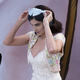 The highlight of this exquisite headpiece is its moveable veil, adding an element of intrigue and romance to your look. Whether you choose to wear it draped over your face for a touch of mystery or swept back for a more demure effect, the veil adds a sense of drama and sophistication that is sure to turn heads.