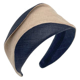 Italian Raffia Matisse Headband with Linen Base. This headband is like no other and inspired by the artist, Matisse. This is one of our moveable styles! Contrasting curves adorn this hair band shape and folding flaps allow the wearer to create different looks with one headband. Our Matisse is a fitting alternative to a hat for any occasion. Or swap your basic wide band for this eye catching masterpiece. Crafted from linen and straw raffia, our headband boasts a classic yet refined aesthetic that effortlessly complements any ensemble. The texture of the linen fabric evokes a sense of timeless elegance, while the delicate straw trim adds a touch of opulence, elevating our Matisse headband to a statement piece that commands attention.