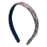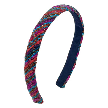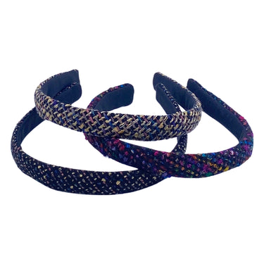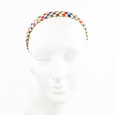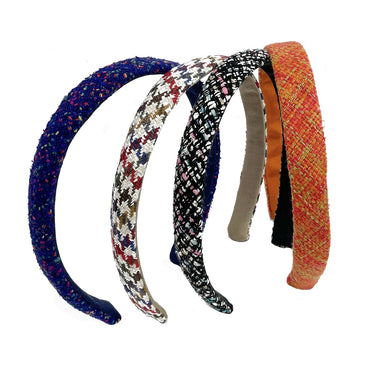 Can I have one in each color scheme please! These hairbands are less than an inch wide and made from the softest raw silk tweeds. Make this winter fun with the color we call Brooklyn (orange) or Coney Island (multi color check). Perhaps you could even attach your favorite pin to make it your own! The diagonal effect of the bias cut gives these narrow bands and extra funky cool.