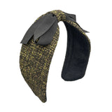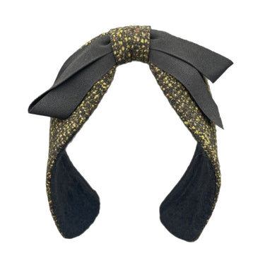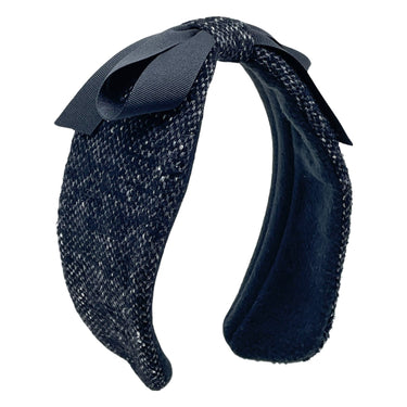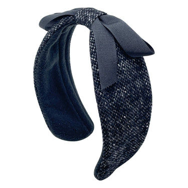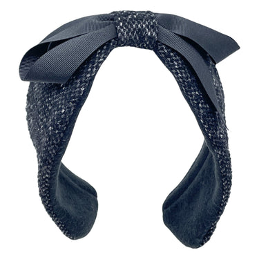 These vintage-styled wool tweed earmuffs feature a center grosgrain bow, adding a touch of classic elegance to their design. The adjustable fit ensures they provide both comfort and practicality, allowing for a customizable and secure wear. Perfect for embracing retro charm while staying warm and stylish in colder weather.