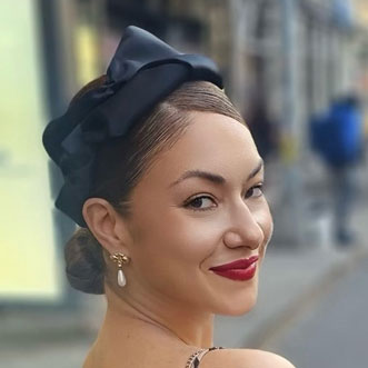 Our Taffeta Katarina Fascinator is a true masterpiece of elegance and avant-garde design that transforms any occasion into a showcase of style and sophistication. Crafted from luxurious taffeta, this fascinator is a celebration of texture, shape, and artistry. The sculptural design creates a dynamic and eye-catching accessory that captures attention with its bold yet graceful presence. The taffeta material adds a touch of opulence, ensuring you stand out at any event. The Katarina fascinator is meticulously crafted to sculptural perfection, making it a wearable work of art that transcends traditional headwear.