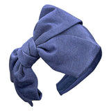 Scrupulously sourced Swiss grosgrain ribbon offers a touch of luxury to accentuate the wearer's face and to elevate an entire look. The band measures approximately 1 1/2" (3.8cm) and the widest part of the bow is approximately 2" (5.08cm).