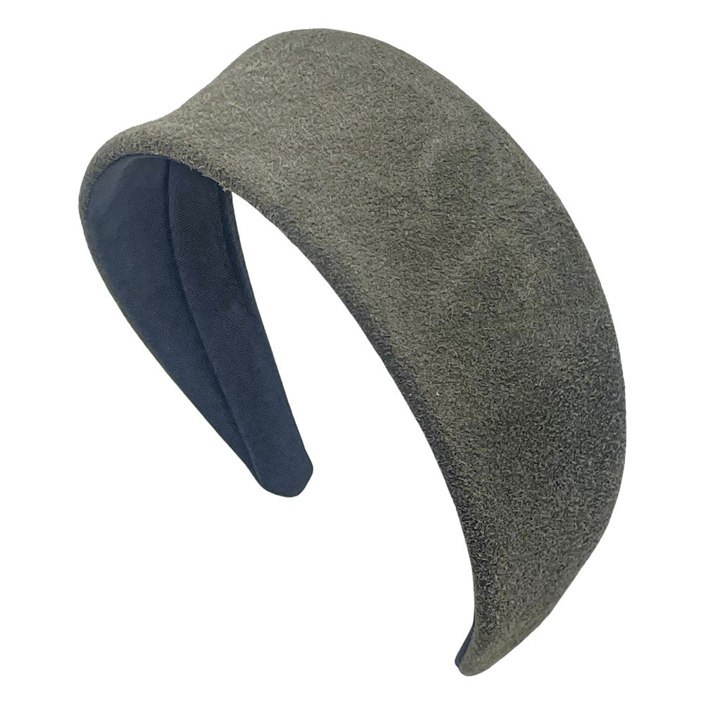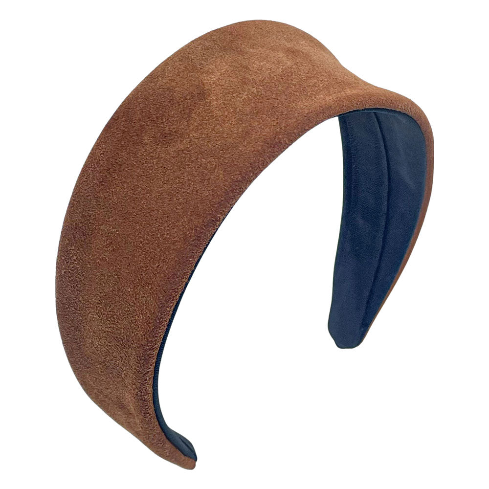 Our suede headband features a basic silhouette designed to resemble a wide headscarf with tapered sides. Its elegant design adds height and sophistication to any hairstyle. Crafted from soft suede, this headband offers a luxurious touch while providing a chic, versatile accessory for various occasions. Elevate your look effortlessly with this stylish and practical piece.