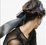 Our Satin Scarf Headband has long gorgeous ribbons that can be tied at the nape of the neck or tied in a bow at the side of your face. You can also wear this shape with the ribbons extending along your hair or wrap it around the top to create your own unique turban shape. We love styles like this, that can be created into many different looks. Its wonderful to wear a design that can be made into so many gorgeous silhouettes, each as alluring as the next. Create your own vintage inspired style with this satin scarf made with luxurious Swiss ribbon.