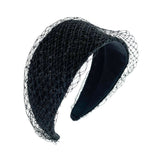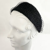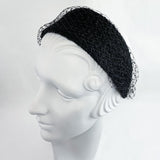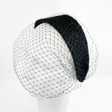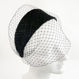 Introducing the ultimate voilette, our sparkly wool headband with versatile veiling trim. The veiling width can be adjusted to your desired width. Create your own look with this style by wearing the veiling open over the face or folded on top of the headband. Jennifer loves to create styles that allow the wearer to express themselves and this style is an exceptional example of that. Create some mystery by wearing the veil over your eyes and face. Or go classic vintage glam and wear the veiling across the top of the headband.