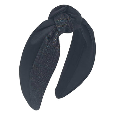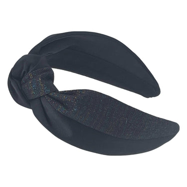 This is our best Black Blair Turban, a masterpiece that seamlessly blends the timeless elegance of satin with the contemporary allure of metallic accents, creating a chic and versatile accessory for any occasion. The black color, combined with metallic accents, creates a striking contrast, making it a bold yet versatile choice for both formal events and everyday chic. The turban's design ensures a comfortable fit and can be effortlessly paired with various outfits to add a touch of refined style.