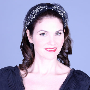 Our exclusive Rhinestone and Tulle Headpiece, is handcrafted in the heart of New York City. Each piece is a labor of love, delicately designed and assembled by skilled artisans who bring together the finest tulle and rhinestones with to create a truly exquisite accessory. This rhinestone turban styled headpiece feature delicate tulle fabric adorned with shimmering rhinestones, resulting in a captivating and elegant design that exudes sophistication and charm reminiscent of a old Hollywood film. As a proud New York City-based brand, we are committed to supporting local artisans and businesses. By choosing our handcrafted headpieces, you're not only investing in a beautifully made accessory but also supporting the vibrant community of artisans and craftsmen in the city that never sleeps.