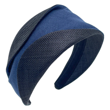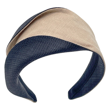 Italian Raffia Matisse Headband with Linen Base. This headband is like no other and inspired by the artist, Matisse. This is one of our moveable styles! Contrasting curves adorn this hair band shape and folding flaps allow the wearer to create different looks with one headband. Our Matisse is a fitting alternative to a hat for any occasion. Or swap your basic wide band for this eye catching masterpiece. Crafted from linen and straw raffia, our headband boasts a classic yet refined aesthetic that effortlessly complements any ensemble. The texture of the linen fabric evokes a sense of timeless elegance, while the delicate straw trim adds a touch of opulence, elevating our Matisse headband to a statement piece that commands attention.