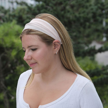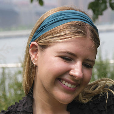 Our Silk Chiffon Scarf headband is an all time client favorite. It is made of 100% silk chiffon and it is delicately draped across a narrow headband. This allows the wearer to create their own width of the hairband. Wear it fully open to create a wide scarf look, like Bridget Bardot, or wear it scrunched to give you a smaller width. You can even wear it lower, covering your forehead for hippie vibe.