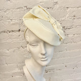 Step into the enchanting world of vintage-inspired glamour with our Veronique Fascinator Hat, a captivating accessory that exudes sophistication and grace. The focal point of this exquisite headpiece is its oversized bow, evoking a sense of nostalgia and femininity reminiscent of iconic vintage styles. The bow is expertly crafted from grosgrain materials, ensuring a luxurious look and feel that enhances your overall ensemble. Designed for both style and comfort, the fascinator is secured in place with a discreet headband, allowing you to wear it with ease throughout the day. Whether you are off to the races, a cocktail party, or your best friend's wedding, wearing this hat will show your love for couture fashion.