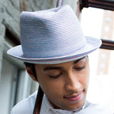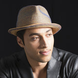 The fedora itself boasts a structured crown with a pinched front and a medium-width brim, creating a sleek and stylish silhouette that is both versatile and refined. Created with our unique color stitch straw process, this design is reminiscent of vintage craftsmanship. The detailed stitching adds depth and texture to the hat, creating a striking visual impact that is sure to make a statement wherever you go.