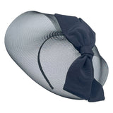 Accentuating the fascinator is a beautifully crafted grosgrain bow, adding a touch of texture and dimension to the design. The bow's classic silhouette lends a sense of sophistication, making it the finishing touch for weddings, garden parties, or any special occasion.